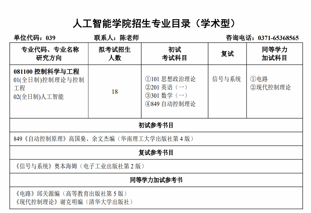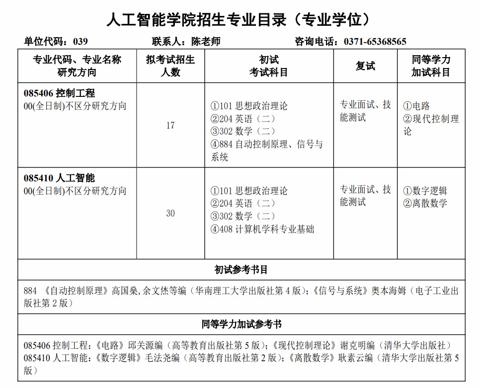 河南大学人工智能学院是首批入驻郑州校区的全建制单位,以建设新工科背景下的研究型学院为办学定位,拥有控制科学与工程硕士学位授权一级学科,电子信息专业学位类别硕士授权点,其中控制科学与工程为省级重点学科。现将 2026年研究生招收专业目录通告如下: