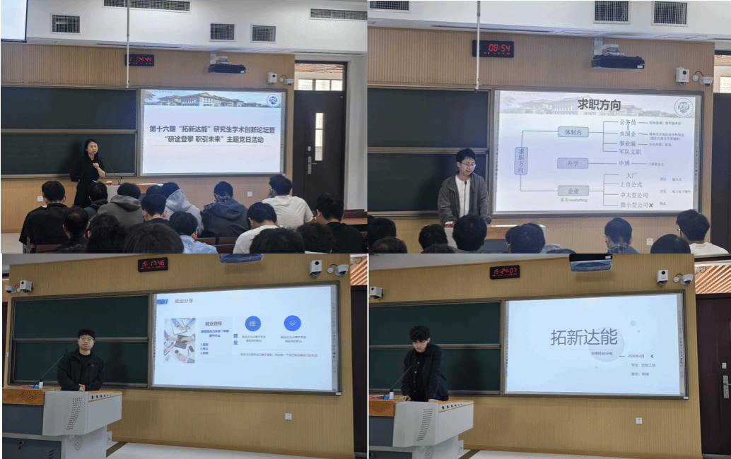 此次分享活动中,各位优秀研究生代表结合自身经历,从国企求职、工科就业、申博深造三个维度分享实用经验,为在场研究生明晰发展路径、破解成长困惑提供有力指导。