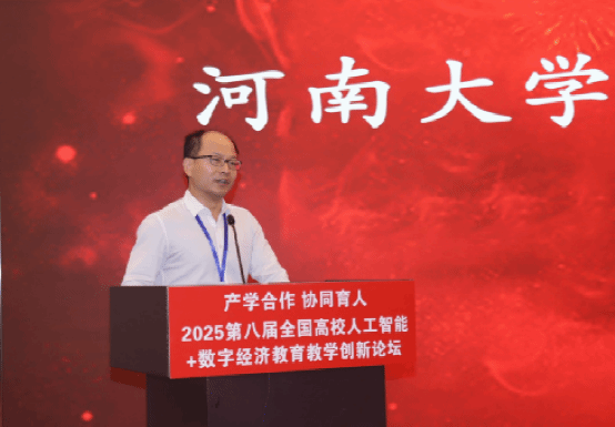 学院周毅教授荣获“2025全国高校人工智能教育教学突出贡献奖”,并作为联盟理事代表在大会上发言。他提到,在人工智能技术深刻重塑全球竞争格局的今天,河南大学锚定“研究型综合性国际化一流大学”总目标,秉承“科技报国、服务社会”的使命,以科研创新为引擎,以协同育人为纽带,着力培养人工智能与多学科交叉融合的复合型拔尖创新人才,探索新工科建设的“河南范式”,持续推动成果转化与社会服务,加速河南大学“双一流”建设,为服务国家战略和区域经济发展注入强劲动能。面向未来,周毅提出三点建议:第一,深化“交叉融合”的顶层设计,系统构建“人工智能+”新兴交叉学科体系;第二,坚持“数智赋能”与“人文关怀”并重,培育学生的科技伦理与社会责任感;第三,构建开放融通的产学研协同生态,紧密对接国家战略与产业需求,共同培养引领未来的人工智能拔尖创新人才。最后,周毅呼吁业界同仁共同携手,为构建中国特色、世界一流的人工智能教育体系贡献力量。