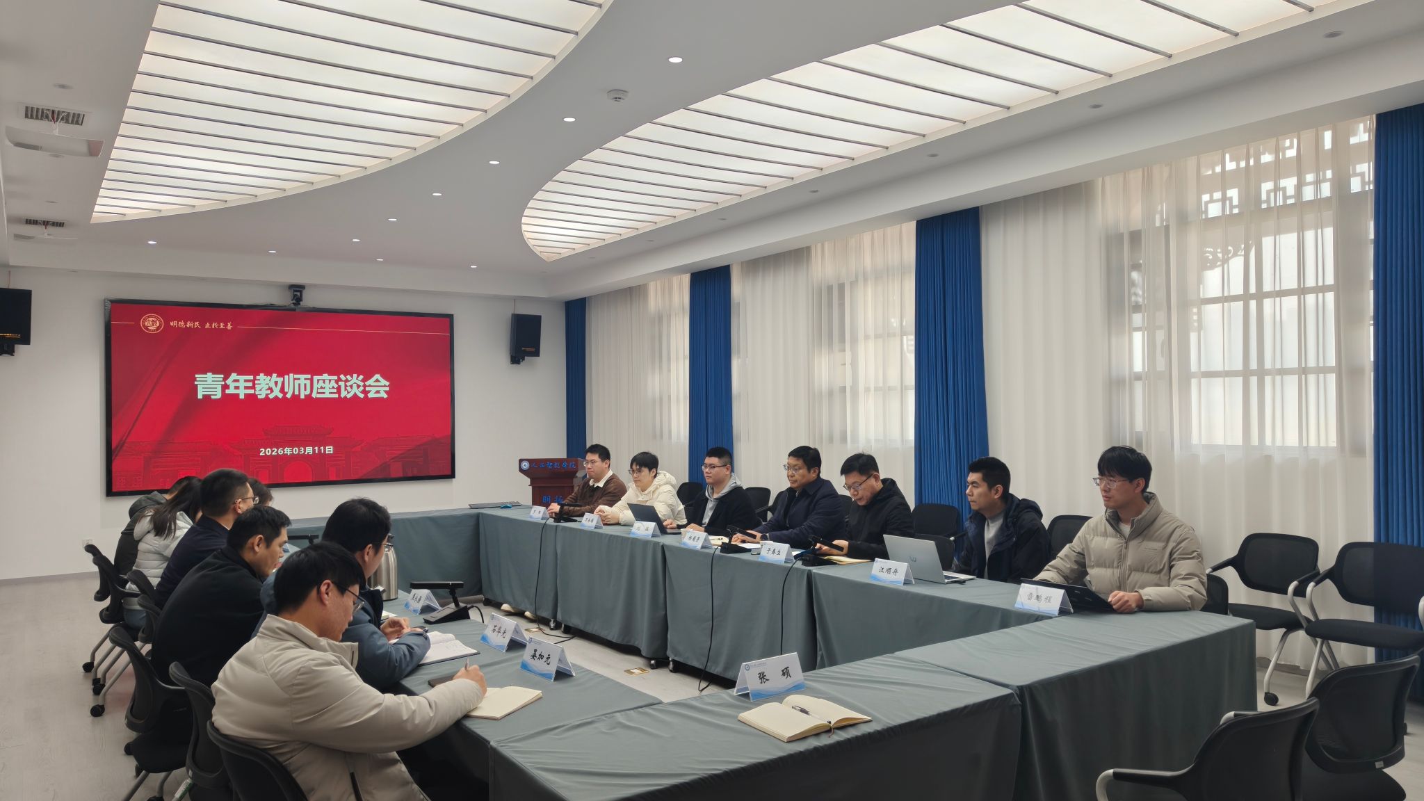 学院10余位近年来新入职青年高层次人才代表依次发言,畅谈到校工作后的深切体会,表达对学校提供良好发展环境的感激之情,抒发为学校发展贡献青春力量的坚强决心,结合实际从基础条件改善、科研评价体系优化、日常管理服务提升等方面提出意见和建议。