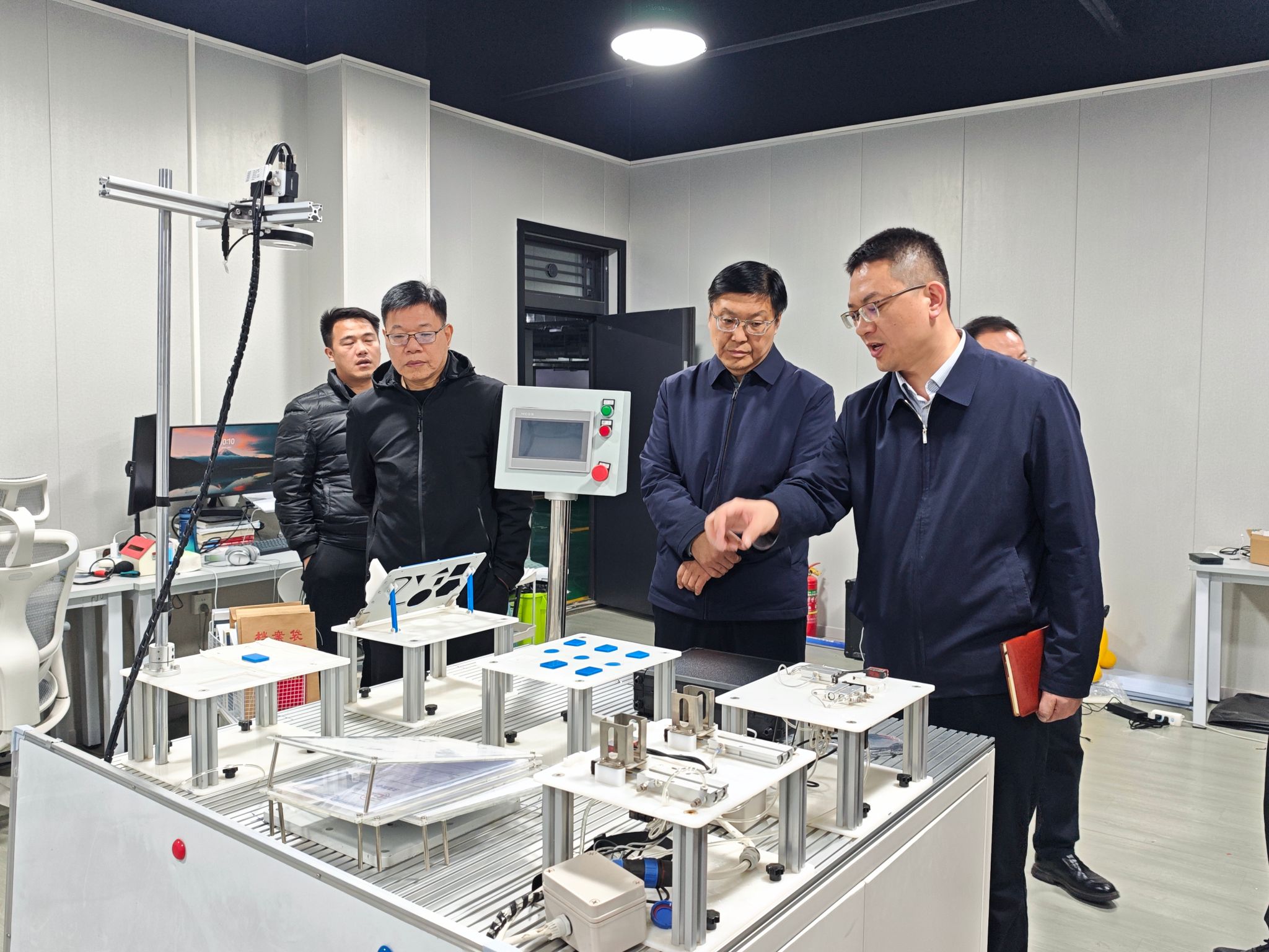 座谈会前,杨萌芽到学院工会小家、创客中心和黄河水下智能信息处理实验室参观,详细了解教职工业余活动、学生学科竞赛开展情况和科研环境营造、科技成果服务区域经济社会发展情况。