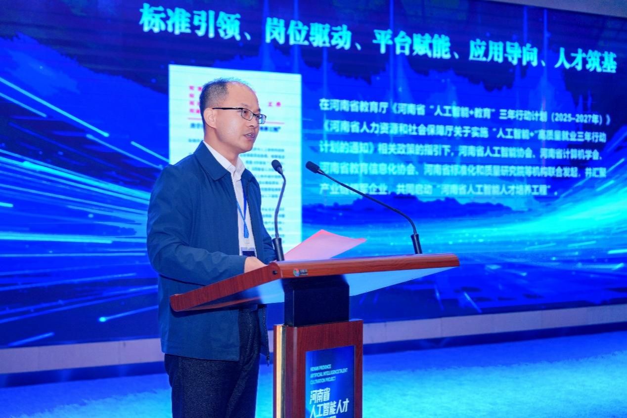 学院周毅教授应邀出席人工智能人才培养工程启动仪式,并代表各发起单位深度解读了《河南省人工智能人才培养工程实施方案》,正式启动该项工程。该工程由河南省人工智能协会、河南省计算机学会、河南省教育信息化协会、河南省标准化和质量研究院等单位联合发起,汇聚近70所省内院校及20多家产业链头部企业,致力于构建产教深度融合的人工智能人才培养新体系。工程以“标准引领、岗位驱动、平台赋能、应用导向、人才筑基”为核心理念,重点围绕构建岗位标准体系、贯通学科专业体系、开发优质课程资源、建设协同创新平台、打造“双师型”师资队伍等五大任务展开,预期到2027年,基本建成与我省人工智能产业发展相适应的高质量人才培养与供给体系。