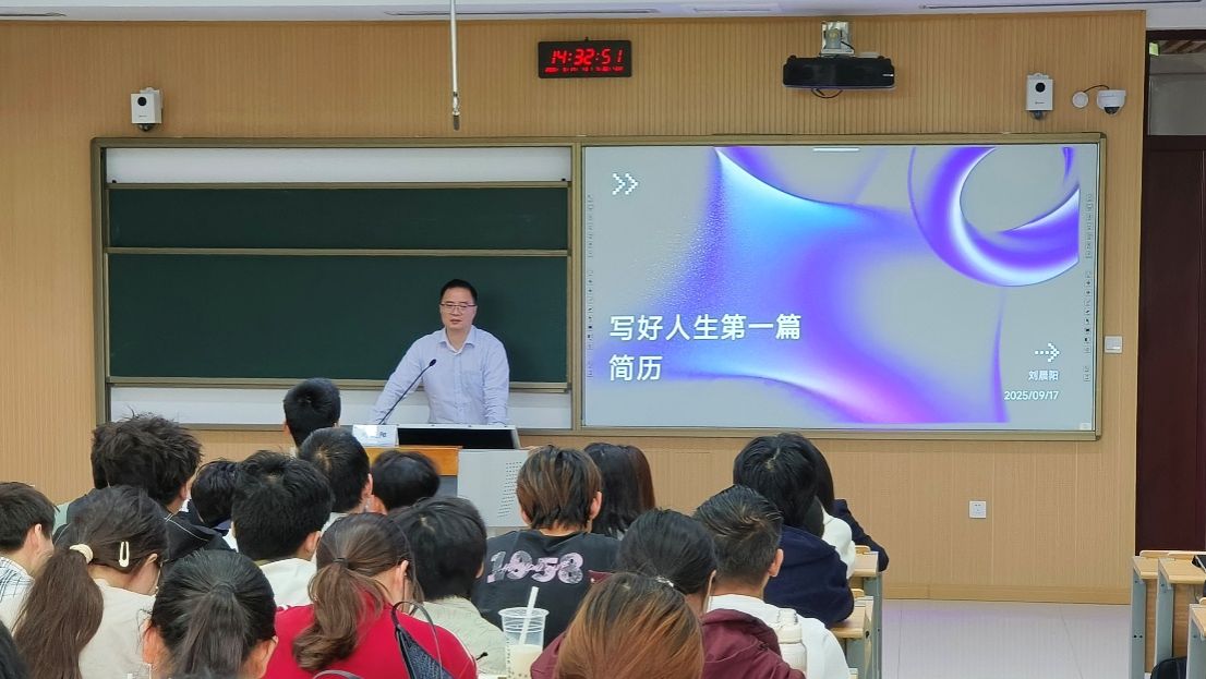 刘晨阳围绕职业规划与简历撰写两大核心板块展开讲解。他结合企业人才选拔视角表示,大学阶段的系统性规划布局是职业竞争力的重要基石。同学们需提前明确学分提升、升学准备、实习实践等核心目标,构建个性化成长路径。在简历撰写指导环节,他深入拆解简历核心要素,强调学习能力、科研经历、实习经验及参与校园活动较为重要,并且需要精准提炼,突出个人能力与职业规划的匹配度。他还认为,人际关系处理能力、善良的品质、坚韧的精神、对事业的热爱以及独立思考能力,是影响长期职业发展的关键性格要素。同时,他鼓励学子保持自信心态,积极迎接挑战,主动把握机遇、承担任务,在实战中实现快速成长。