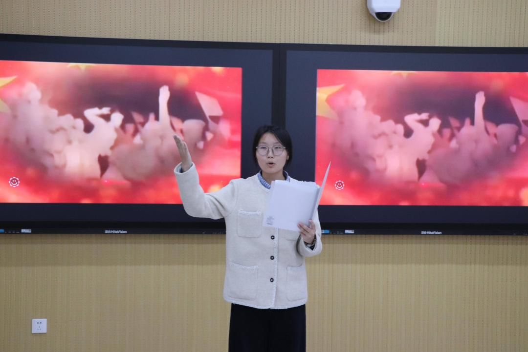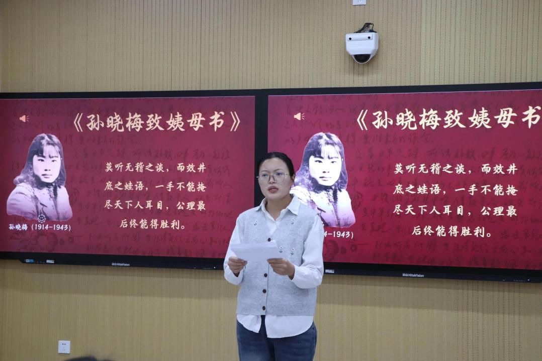 活动还设置“红歌赞祖国”环节。大家合唱《没有共产党就没有新中国》《我和我的祖国》,表达了对党和人民的无限忠诚与热爱。教师代表姚丹丹独唱《红梅赞》,以婉转深情的嗓音将“红岩上红梅开”的坚贞气节展现得淋漓尽致,向革命先烈的不朽精神致敬。